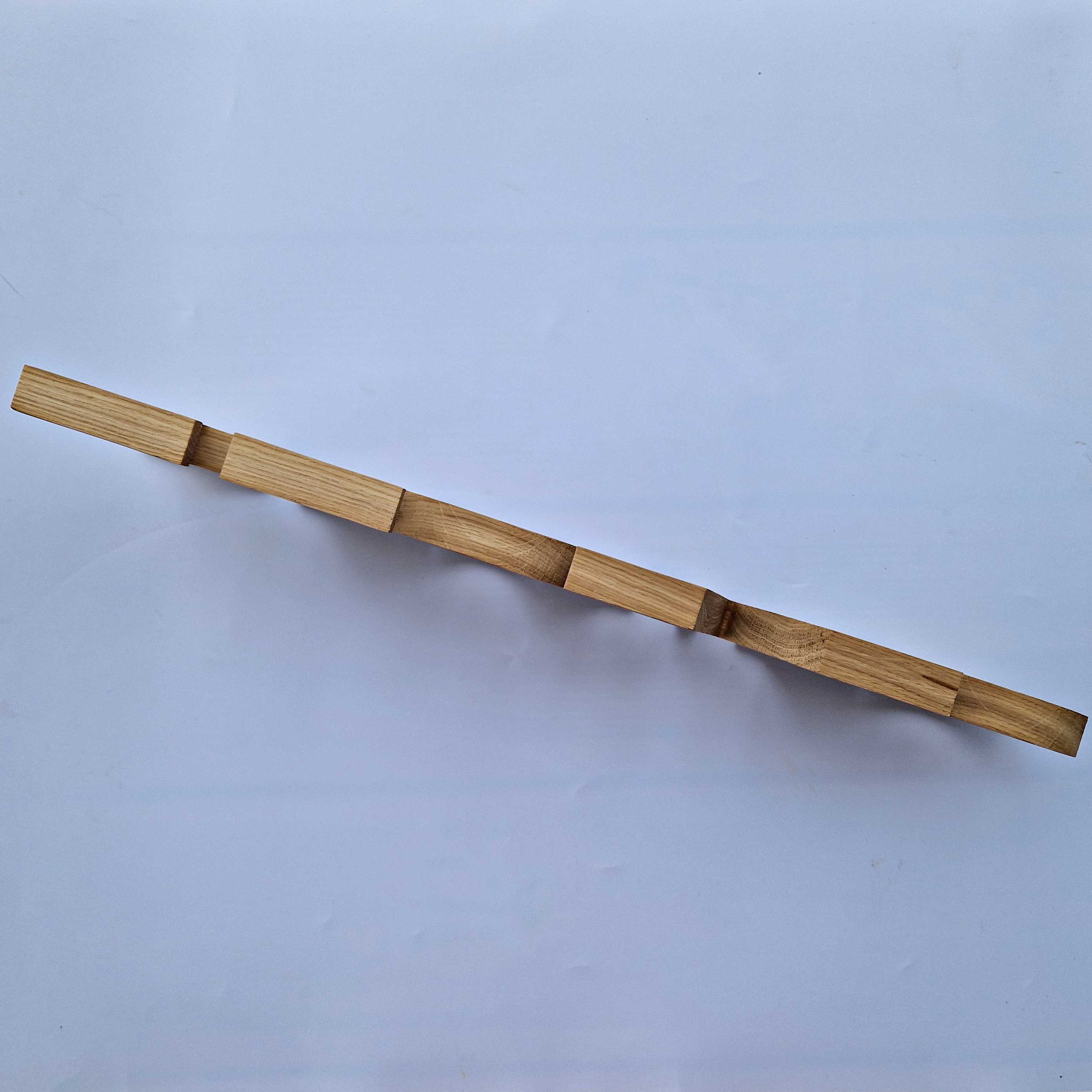 Wykonany z wysokiej jakości dębu lub jesionu i zabezpieczony bezbarwnym olejem, podkreśla naturalne piękno drewna, jednocześnie chroniąc jego powierzchnię. To subtelny, ale wyrazisty dodatek na półkę, komodę czy parapet – idealny, by nadać przestrzeni przytulny, domowy charakter.